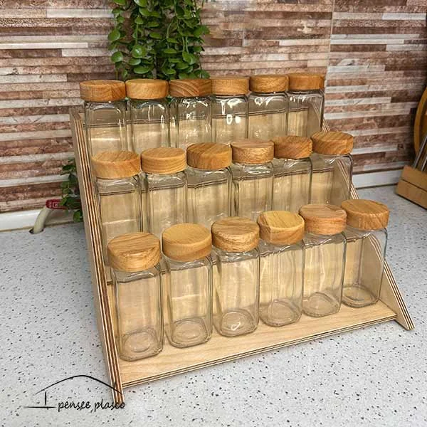 استند پلکانی چوبی یکی از زیباترین محصولات پنسی پلاسکو است که شما عزیزان می توانید آن را صورت تک یا همراه با شیشه های ادویه درب فلزی یا درب چوبی تهیه کنید. یکی از جذابیت های این استند دو کاره بودن آن است که هم به صورت ایستاده بر روی کابینت و هم خوابیده داخل کشو قابل استفاده است.