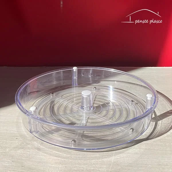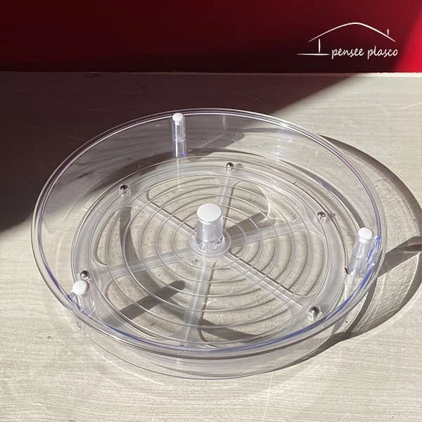 جنس این محصول از اکرولیک شفاف و بسیار باکیفیت است. قطر آن 24 سانتی متر و دارای چرخش 360 درجه می باشد.