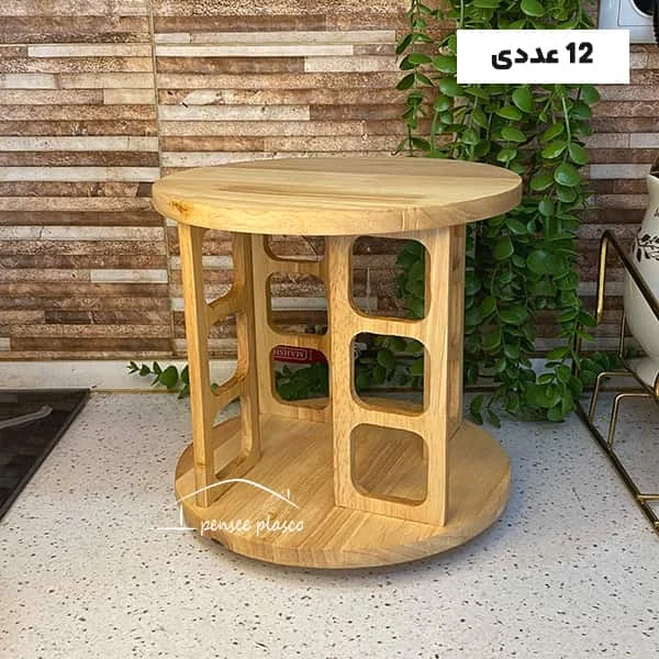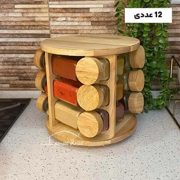 استندهای گردان چوبی از جنس رابروود در دو مدل 12 و 16 عددی (ابعاد 22×22 و 22×27) عرضه می‌شوند. شیشه‌ها از نوع مک‌کارتی 12 سانتی با درب چوبی بوده و سرنمک‌پاش و لیبل ضدآب به‌صورت جداگانه قابل تهیه هستند.