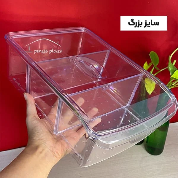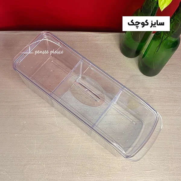باکس یخچالی درب دار کریستالی از پرفروش ترین ظرف های نظم دهنده درون یخچال با مقاومت بالا و ساخته شده از مواد بهداشتی و دارای گرید غذایی می باشد که در 3 ابعاد مختلف قابل سفارش است.