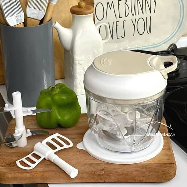 خردکن دستی ایگوری Igory دارای یک تیغهی پنج پر و بسیار تیز در دو ردیف است که روی محور خود به چرخش درمیآید. علاوهبر تیغه، یک همزن با پایه نیز در بستهبندی محصول وجود دارد که میتوانید از آن برای همزدن تخممرغ یا مایع کیک و… استفاده کنید.
