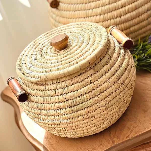 - تهویه مناسب: بافت حصیری خمره باعث جریان هوای مناسب در داخل ظرف میشود که از رطوبتگیری و شته زدن برنج جلوگیری میکند.