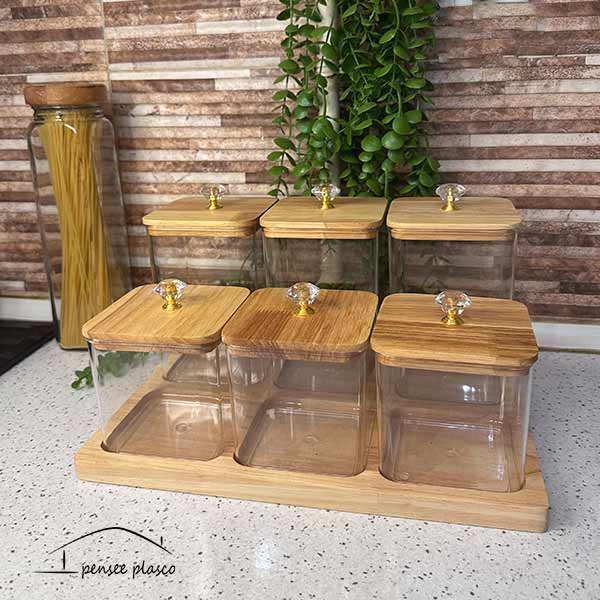 3 عدد بانکه بزرگ | 3 عدد باتکه کوچک | 1 عدد سینی چوبی