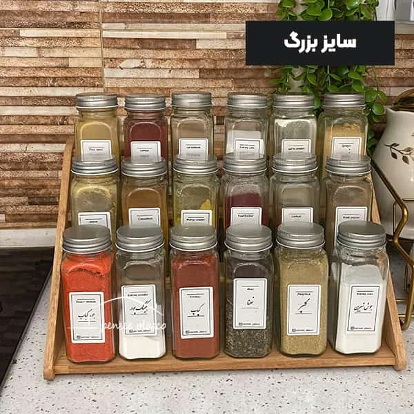 شیشه های ادویه در پنج سایز مختلف موجود هستند.