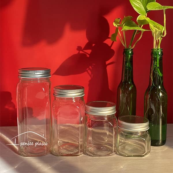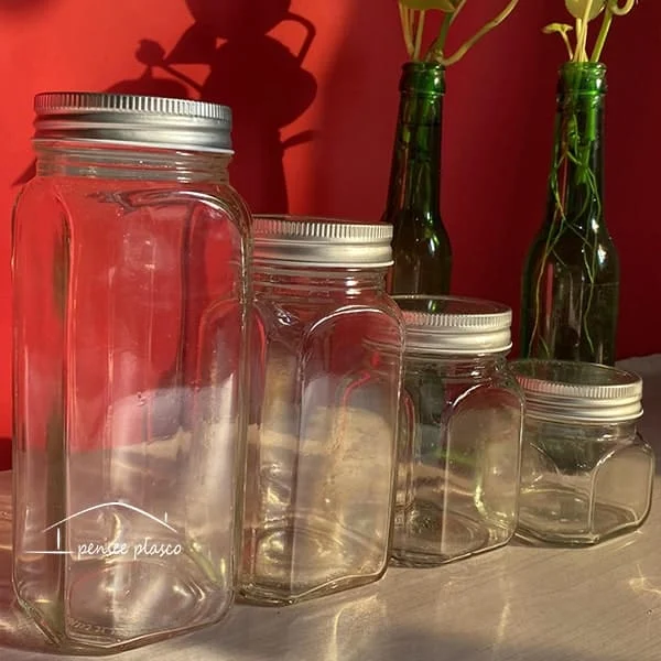 بانکه شیشه ای مک کارتی در چهار سایز مناسب برای انواع خشکبار، سبزی خشک، حبوبات و …