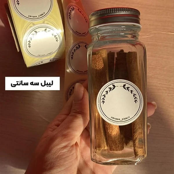 لیبلهای گرد هم در دو قطر سه سانتی (مناسب برای شیشه ادویه) و قطر پنج سانتی (مناسب برای شیشه های حبوبات و خشکبار) موجودن.