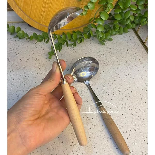 کفگیر، ملاقه و قاشق خورشت دسته چوبی وارداتی